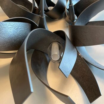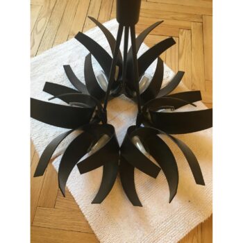 Revitalize your home with the Grand Wrought Iron Chandelier, a masterpiece of postmodern design that blends artistic flair with functional luminosity. This striking pendant light is the perfect centerpiece to enhance the ambiance of your dining room, living room, or any area deserving a touch of grandeur. With its forged wrought iron bands and clear glass shades, this chandelier captures the dynamic essence of solar flares, transforming light into a captivating display of warmth and creativity.